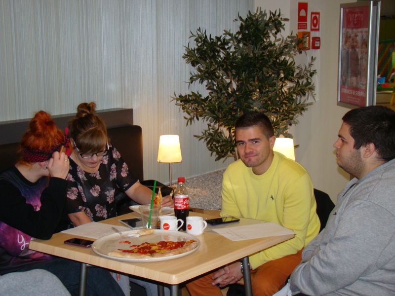 w tym dniu wyraźnie odmówiła współpracy. Ale nic to! Lekka modyfikacja planów i zamiast smażyć kiełbaski nad Chechłem, wszyscy uczestnicy przenieśli się z deszczowej, zimnej rzeczywistości do ciepłego i gościnnego wnętrza galerii MAX, by tam oddać się konsumpcji pizzy degustacji pysznej kawy, a także wziąć udział w przygotowanym na tę okazję konkursie.