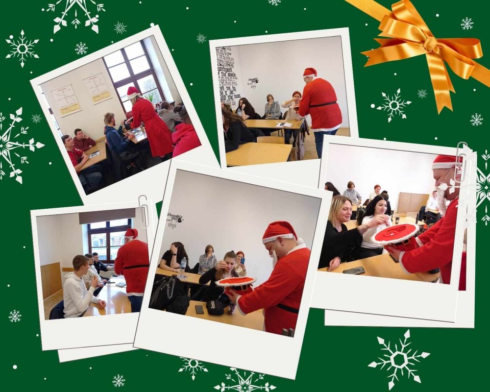 Cóż to było za miłe zaskoczenie i radość, gdy do słuchaczy klas zaocznych zawitał Mikołaj. Nikt nie spodziewał się takiej niespodzianki. Wszyscy otrzymali słodkie upominki, a w klasie 2d Mikołaj rozdał mnóstwo prezentów.